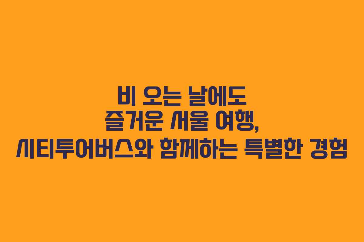 비 오는 날에도 서울 시티투어버스를 통해 멋진 여행을 계획해 보세요. 서울의 다양한 매력을 경험하며 잊지 못할 추억을 만들어보시길 바랍니다.