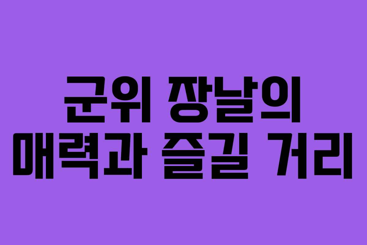 군위 장날은 지역의 전통과 문화를 느낄 수 있는 중요한 행사입니다. 매월 정해진 날짜에 열리는 이 장날은 신선한 농산물과 전통 음식을 즐기고, 지역 특산물과 수공예품을 구입할 수 있는 좋은 기회를 제공합니다. 또한, 지역 주민들과의 소통을 통해 그들의 삶의 방식을 이해할 수 있는 소중한 경험이 됩니다. 군위 장날을 방문하면 지역의 진정성과 활기를 직접 체험할 수 있는 특별한 순간을 만날 수 있을 것입니다.