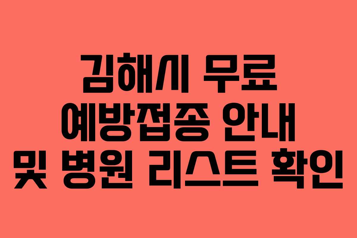 김해시에서는 무료 예방접종을 받을 수 있는 지정병원이 있으며, 각 병원에서 백신 보유 여부를 확인하는 것이 필수입니다. 아래는 김해시의 지정병원 목록입니다.