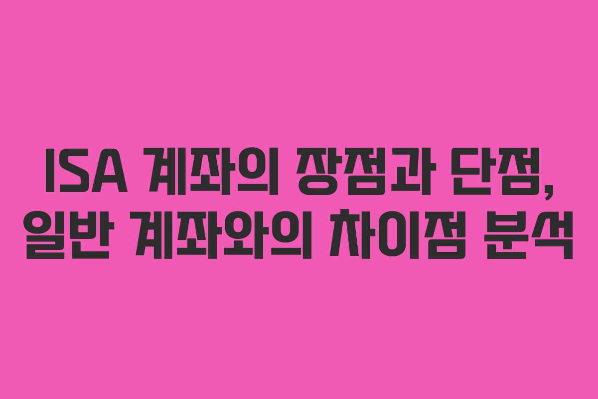 ISA 계좌의 장점과 단점, 일반 계좌와의 차이점 분석