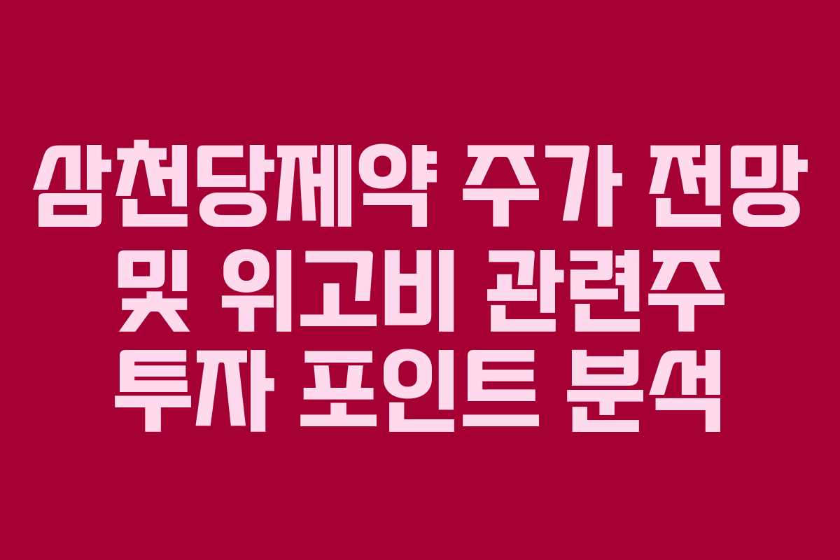 삼천당제약은 최근 주식 시장에서 뜨거운 이슈로 떠오르고 있습니다. 특히 위고비와의 관계로 인해 많은 투자자들의 관심을 받고 있는 상황입니다. 이 글에서는 삼천당제약의 주가 흐름, 위고비와의 연관성, 그리고 앞으로의 투자 포인트를 체계적으로 정리해 보겠습니다.