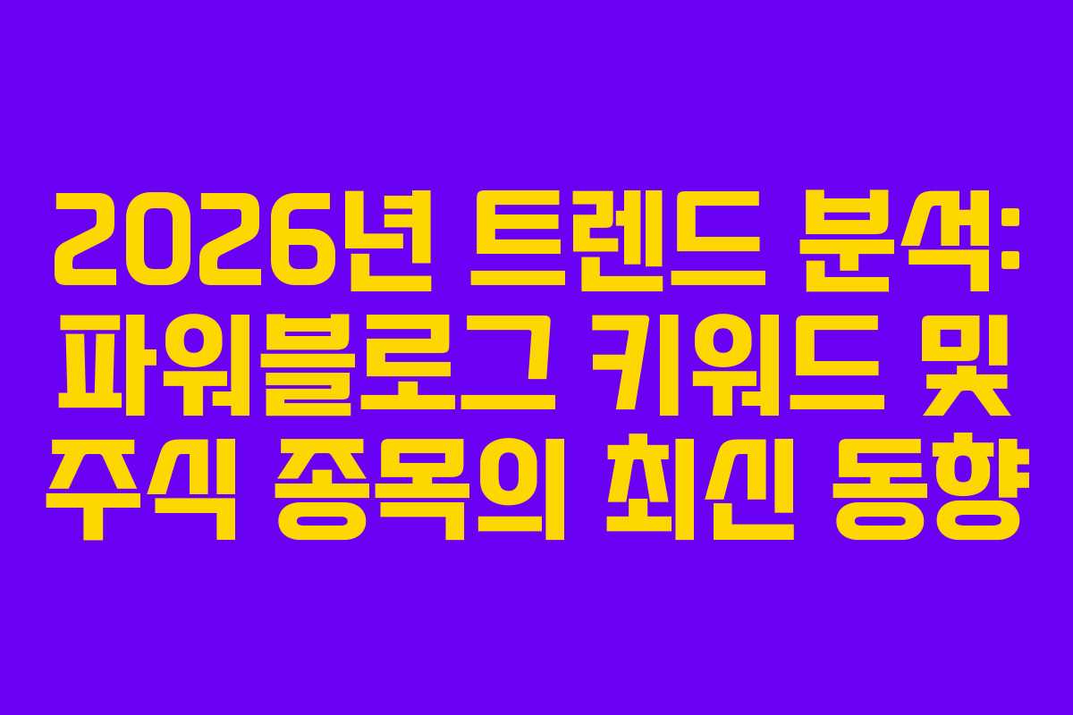 2026년의 변화를 반영하여 블로그 키워드와 관련 주식 종목의 동향을 심층 분석해보겠습니다. 많은 사람들은 키워드 유입이 주식 투자에 어떤 영향을 미치는지 궁금해합니다. 최근에는 다양한 키워드가 부각되고 있으며, 이와 관련된 주식 종목들도 주목받고 있습니다. 이번 글에서는 2026년의 최신 데이터를 바탕으로 키워드와 주식 종목의 연관성을 살펴보겠습니다.