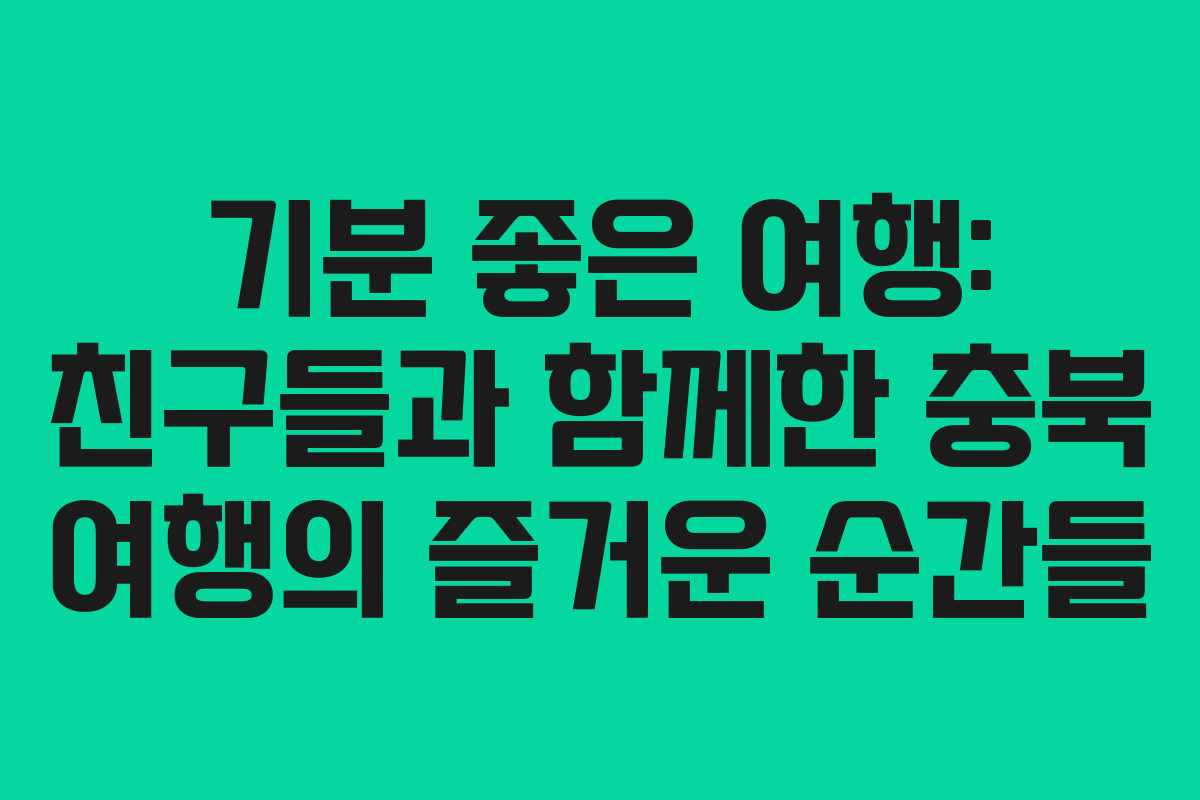2026년의 봄, 친구들과의 여행은 언제나 특별한 기억으로 남습니다. 이번에는 충북 청주와 제천을 여행지로 선택했습니다. 1박 2일 동안의 여행 일정은 친구들과의 소중한 시간을 더욱 의미 있게 만들어 주었습니다. 이 글에서는 여행의 하이라이트와 함께 충북 지역의 매력을 소개하고자 합니다.