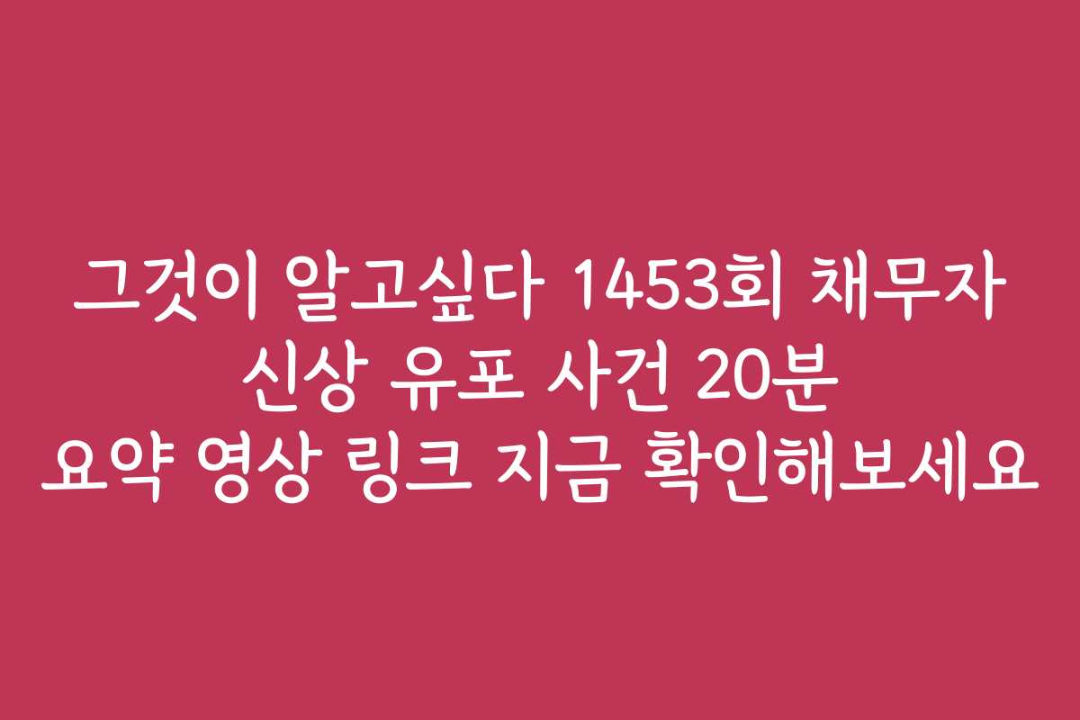 ‘그것이 알고싶다’는 한국에서 유명한 탐사 보도 프로그램입니다. 1453회에서는 채무자 신상 유포 사건을 상세히 다루었습니다. 이 사건은 개인의 사생활과 안전을 위협하는 심각한 사회 문제로, 한 개인의 신상정보가 불법적으로 유포된 사례를 중심으로 합니다.