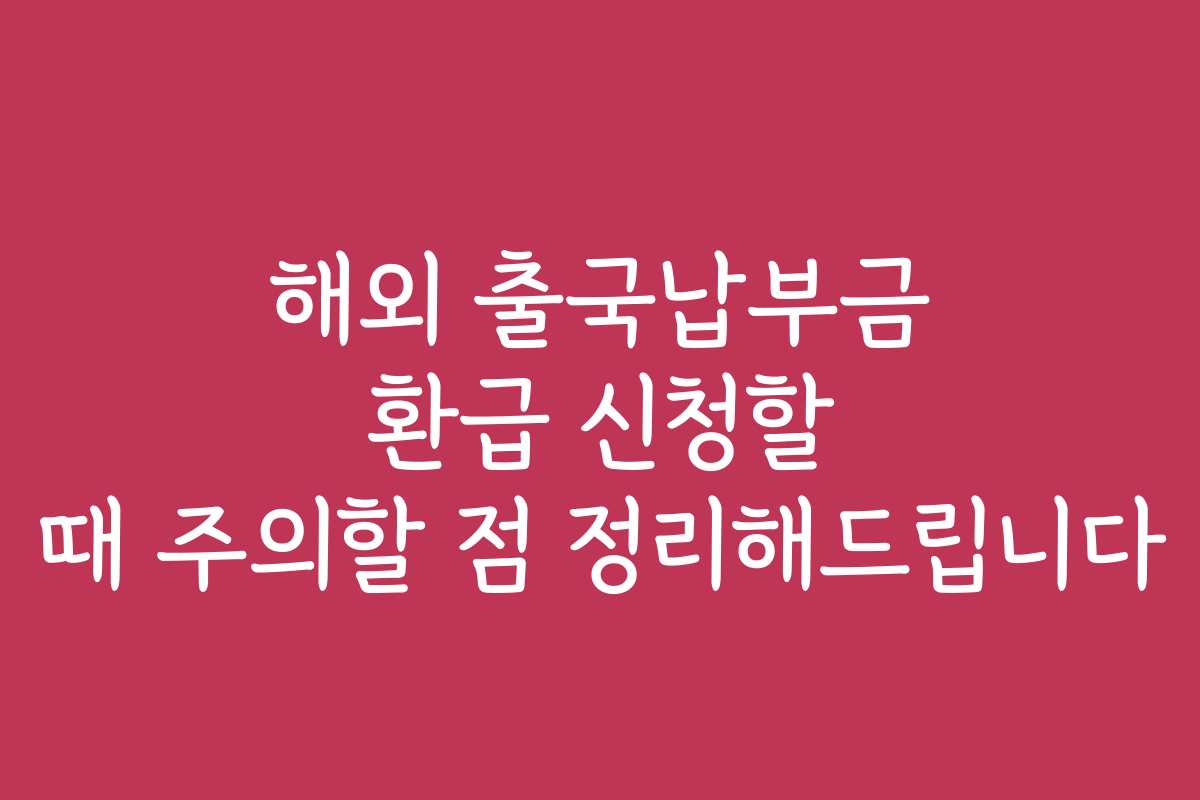 해외 출국납부금 환급 신청, 어렵게만 느껴지시나요? 많은 분들이 해외에서 납부한 금액 때문에 힘든 경험을 하고 있습니다. 이 글에서 ‘해외 출국납부금 환급 신청할 때 주의할 점’에 대한 실질적인 해결책을 제시하겠습니다.