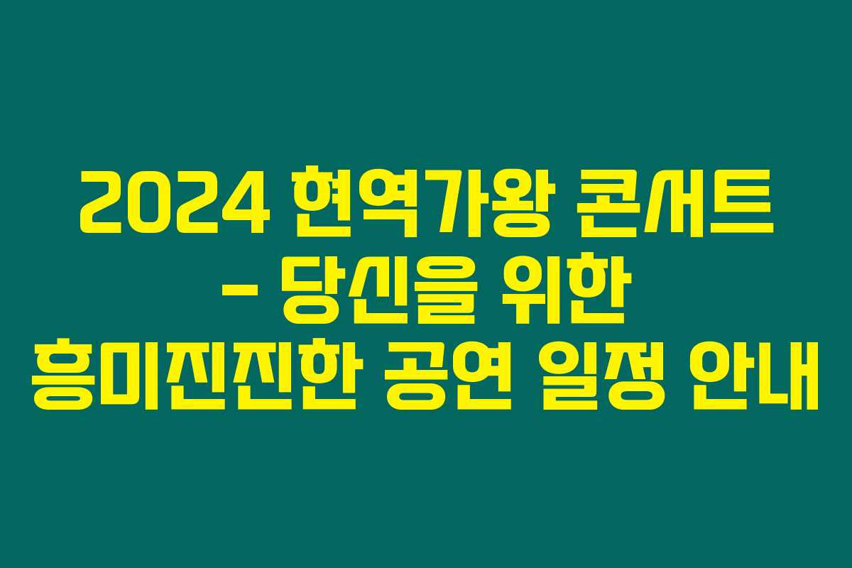 현역가왕 콘서트의 티켓과 일정에 대해 이렇게 자세히 안내해드렸어요. 이제 남은 건 좋아하는 아티스트의 멋진 공연을 직접 즐길 준비를 하시는 것뿐이에요!