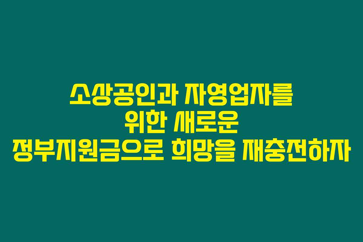 소상공인과 자영업자를 위해 정부에서 제공하는 지원금. 이를 통해 더 나은 미래를 꿈꿀 수 있다는 사실 알고 계셨나요? 정부는 경제 회복을 위해 다양한 지원 프로그램을 시행하고 있습니다. 만약 소상공인로서 어려움을 겪고 있다면, 이 글을 통해 최신 지원금을 확인하고 희망을 재충전해 보세요!