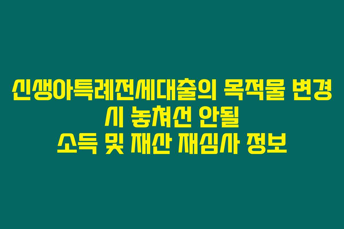 신생아특례전세대출을 이용 중이신 분들 중에서 또는 계획하고 계신 분이라면, 목표물 변경 시 소득 및 재산 재심사의 중요성을 꼭 알아두셔야 해요. 특히 대출의 조건이 변경될 수도 있고 예상치 못한 제약이 생길 수 있다는 점은 주의가 필요하답니다. 아래를 읽어보시면 신생아특례전세대출 목적물 변경 시 중요할 사항들을 안내해 드릴게요.