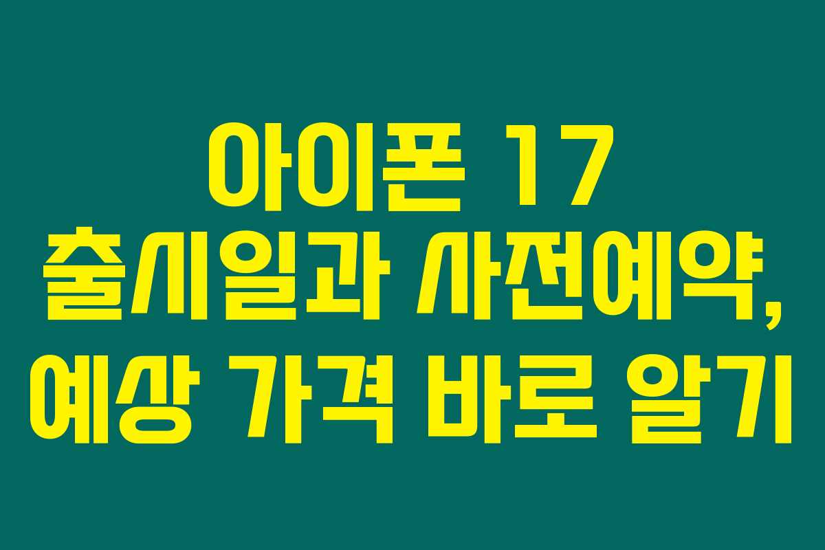 아이폰 17에 대한 기대가 높아지고 있다면 아래의 내용을 놓치지 마세요. 아이폰 17의 출시일, 사전예약 정보, 예상 가격을 확인해보세요. 이제 곧 애플의 다음 스마트폰이 출시될 예정이니 놓치지 말고 정보 파악하세요.