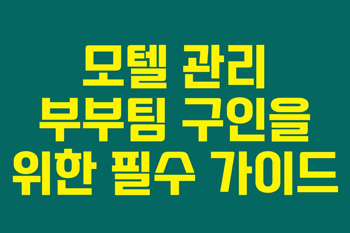 부부팀으로 모텔 관리 일을 찾고 계신가요? 만약 부부팀 구인 공고를 보고 계신다면, 아래 내용을 꼭 확인해보세요. 모텔 관리의 새로운 기회를 놓치지 않기 위해 필요한 정보와 준비 사항을 자세히 알아보겠습니다.