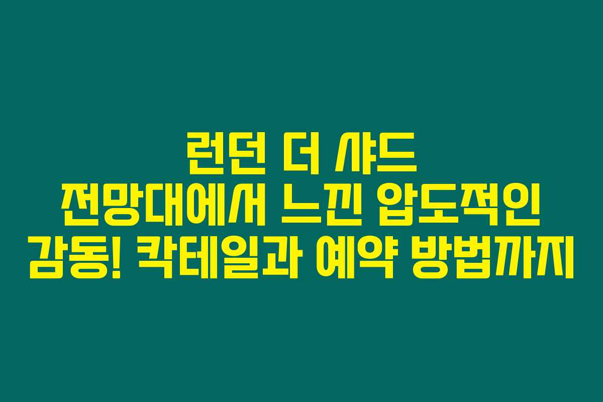 바라보는 것만으로도 가슴이 뛰던 런던의 더 샤드 전망대. 이곳에서의 경험은 환상적이었어요! 방문 계획 중인 분들은 아래를 읽어보시면 진정한 런던의 매력을 느낄 거예요. 전망대의 멋진 경치와 함께 칵테일을 즐기는 법, 예약 방법까지 모두 공개할게요.