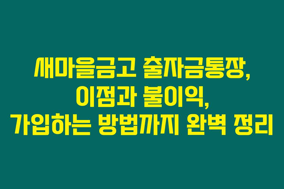 새마을금고 출자금통장은 높은 배당률과 비과세 혜택을 제공하지만, 예금자 보호가 없고 중도 인출이 불가한 단점도 있어요. 가입 방법도 간단하니 자신에게 유리한지를 판단한 후 도전해 보세요!