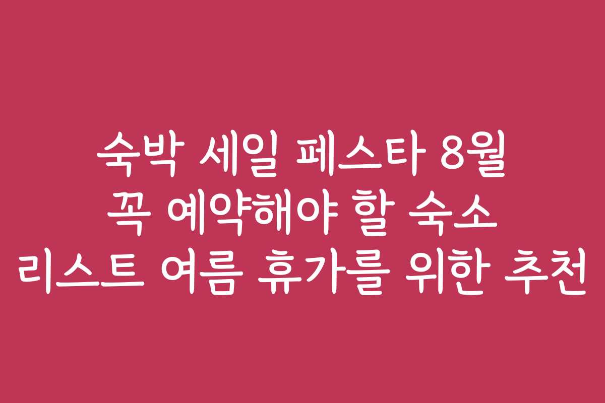 숙소 추천, 여름 휴가, 숙박 세일, 서울 숙소, 부산 숙소, 제주 숙소, 할인 숙박, 숙소 예약 팁, 여름 여행, 여름 필수 아이템, 휴가 계획