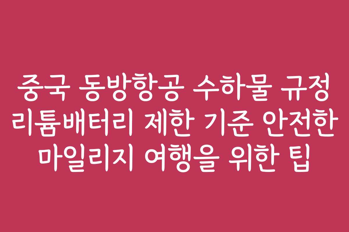 핵심 키워드: 중국 동방항공, 리튬배터리, 수하물 규정, 안전한 여행, 마일리지 여행, 배터리 제한 기준, 항공사 규정, 여행 팁, 고객 서비스, 화물 안전, 국제 항공 운송