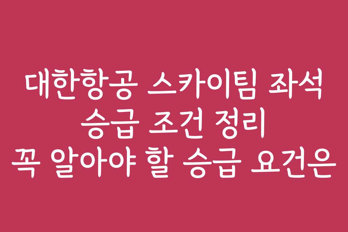 대한항공 스카이팀 좌석 승급 조건은 여행자들에게 중요한 정보입니다. 승급 요건을 제대로 이해하면, 보다 편리하고 쾌적한 비행 경험을 할 수 있습니다. 이 글에서는 대한항공 스카이팀 좌석 승급 조건을 자세히 정리해보겠습니다.