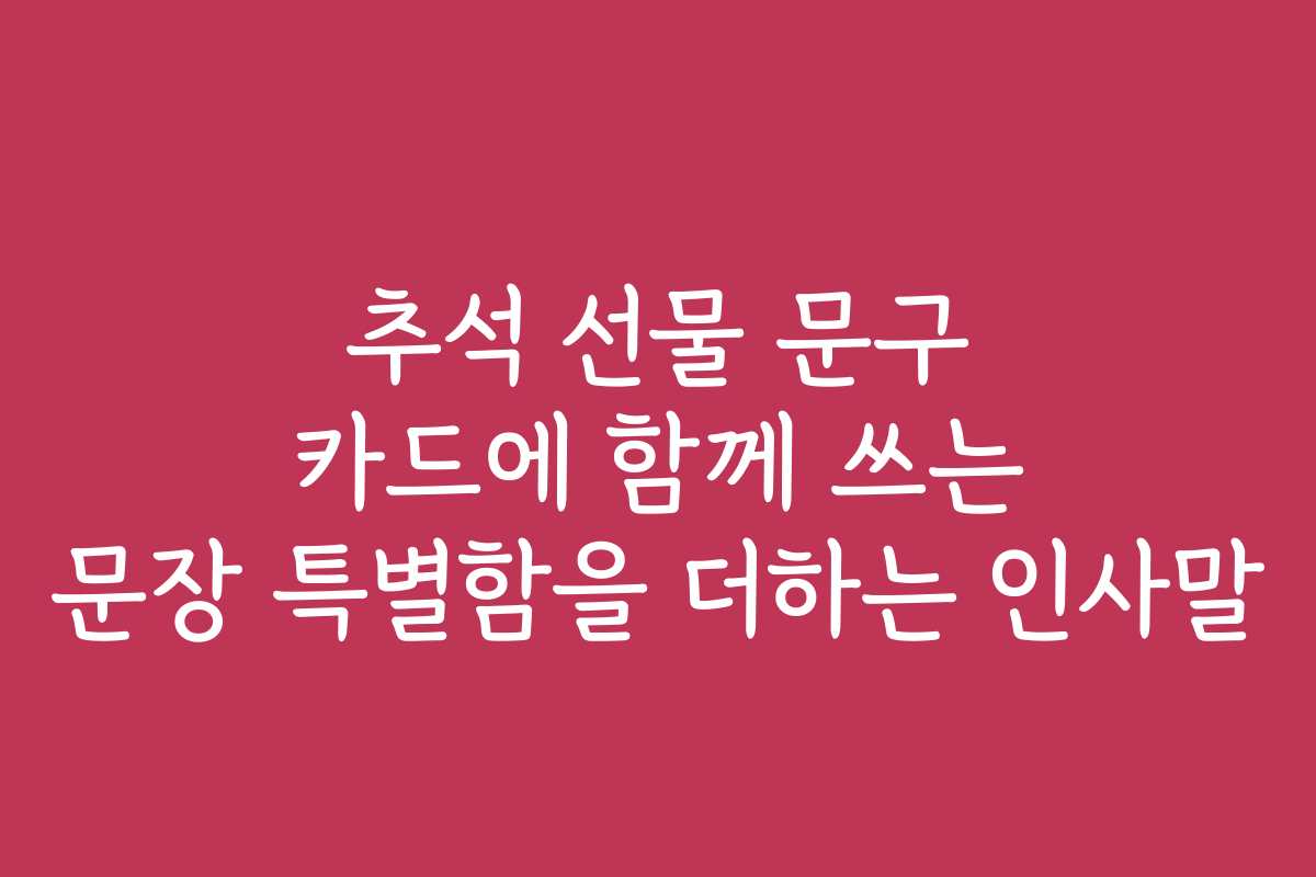 추석은 가족과 친지를 만나는 특별한 시기입니다. 이와 함께 선물의 의미를 더욱 가치 있게 만들어 줄 인사말이 필요합니다. 하지만 어떤 문구를 선택해야 특별하게 느껴질까요? 이번 포스트에서는 ‘추석 선물 문구 카드에 함께 쓰는 문장 특별함을 더하는 인사말’에 대해 함께 알아보겠습니다.