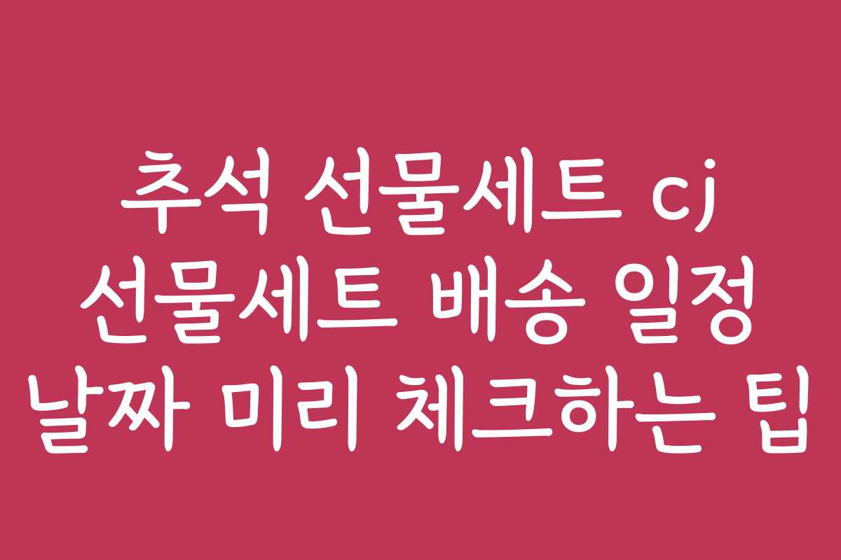 키워드: 추석 선물세트, CJ 선물세트, 배송 일정, 체크하는 팁, 추석, CJ, 명절, 고객 후기, 품질 보장, 유통기한, 음식 선물세트