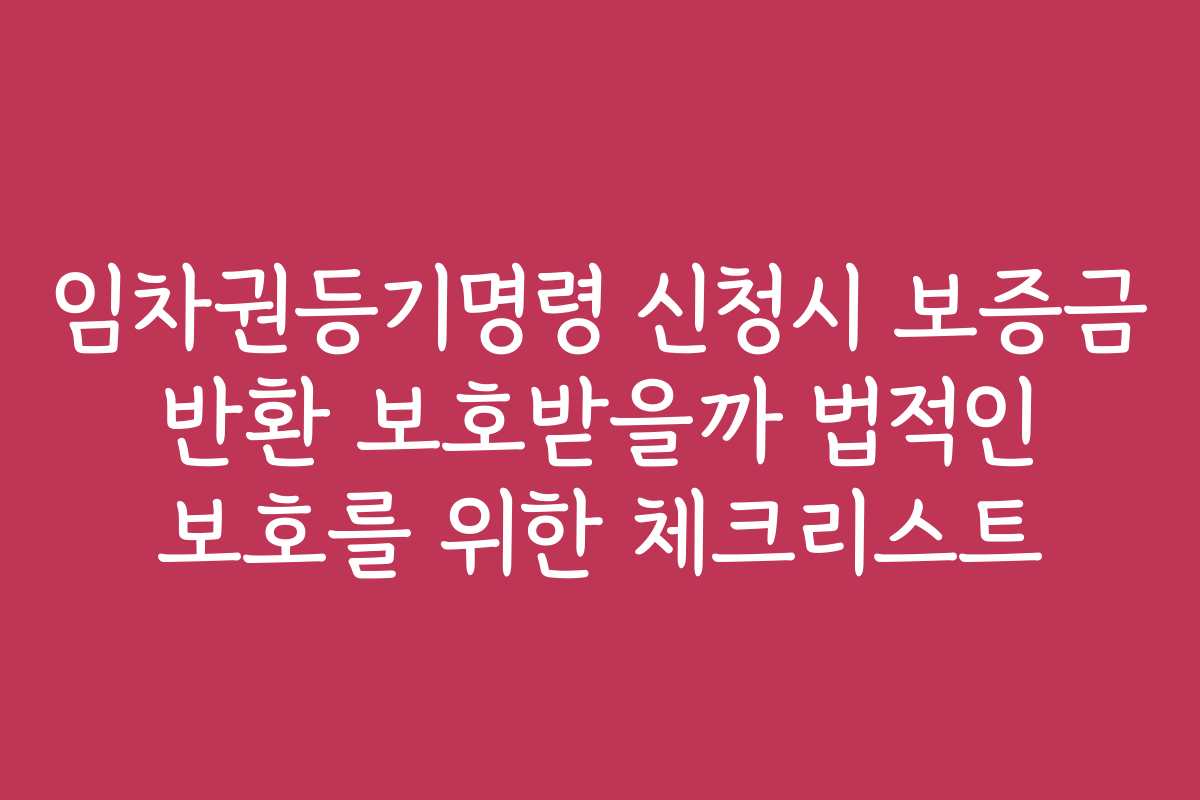 임차권등기명령을 신청할 때, 보증금 반환에 대한 법적인 보호는 매우 중요한 문제입니다. 임차인이 자신이 지불한 보증금을 보호받기 위해서는 적절한 절차를 거쳐야 합니다. 이 블로그에서는 법적 보호를 받기 위한 체크리스트와 함께, 임차권등기명령의 절차와 주의사항에 대해 알아보겠습니다.