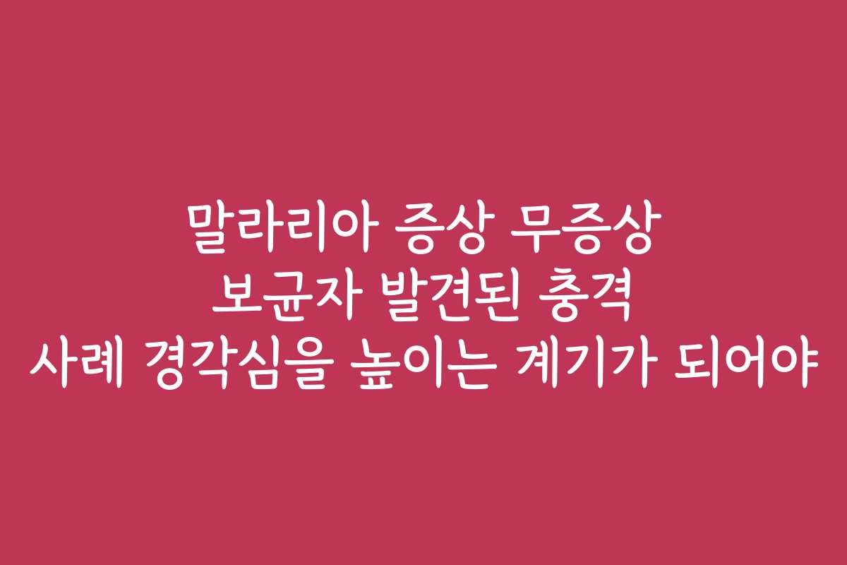 말라리아 증상 무증상 보균자 발견된 충격 사례 경각심을 높이는 계기가 되어야