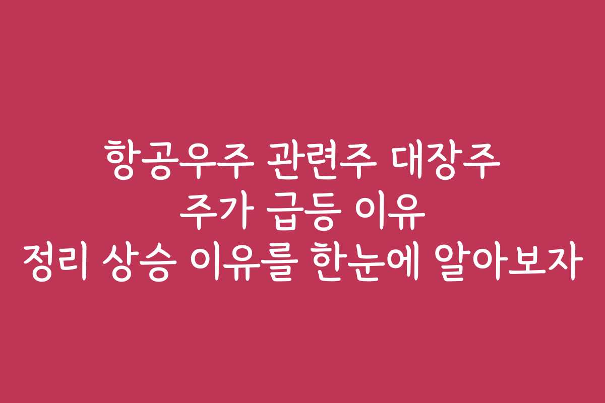 항공우주 관련주 대장주 주가 급등 이유 정리 상승 이유를 한눈에 알아보자