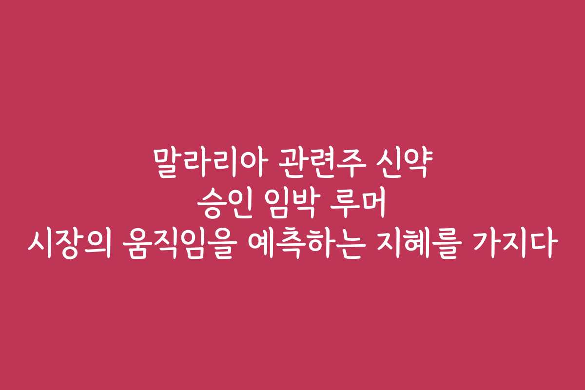 말라리아 관련주 신약 승인 임박 루머 시장의 움직임을 예측하는 지혜를 가지다